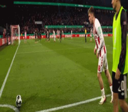 第30分钟,主场作战的科隆率先得分,在一个角球战术中,禁区里的阿赫高高跃起,头球破门,帮助科隆打破僵局。