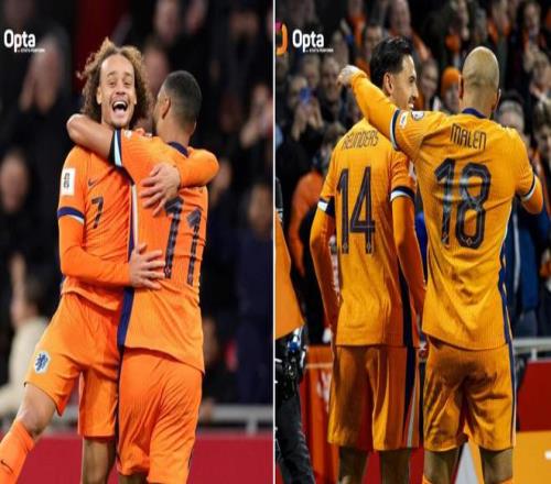 本场比赛,荷兰分别由效力于曼城的赖因德斯、效力于利物浦的加克波、效力于托特纳姆热刺的哈维-西蒙斯以及效力于阿斯顿维拉的马伦取得进球,根据Opta的统计,这是荷兰国家队历史上第一次在单场比赛中有四位来自英超联赛的球员分别破门。