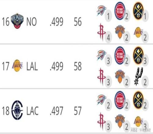 再看看湖人接下来的赛程安排,整体难度在联盟里排第17位,对手的平均胜率是49.9%。湖人队和现在西部排名前三的球队都还有三场硬仗要打呢,和东部前二的活塞、尼克斯也还没碰过面。在剩余的赛程里,雷霆、掘金、马刺这三支球队的难度那可是最高的哟!