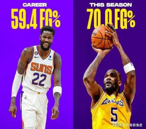 而且啊,艾顿在湖人的投篮命中率,那可是飙到了职业生涯的第一高,70%啊!排在第二的,还是他2021-22赛季的63.4%,这稳定性,简直没话说!