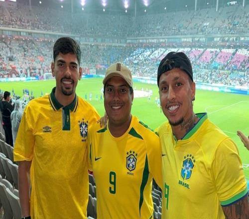 变成球迷,泰山外援克雷桑、马德鲁加现场看巴西vs韩国比赛
